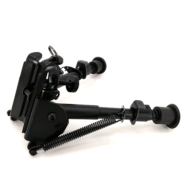 Bípode fabricado en aluminio anodizado y chapa de hierro desdoblada, patas abatibles y telescópicas regulables en longitud a 6 posiciones.